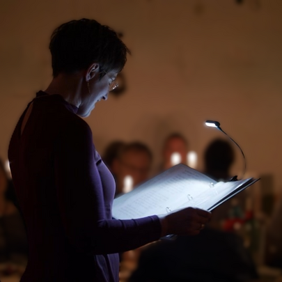 Natürlich kommen Sie nicht allein! Zum feinen Gänsemenü präsentiert Andrea Reimann auch hier charmant erzählte Geschichten über Gänse und anderes erlesenes Federvieh. Selbstverständlich gehört auch Sagenhaftes aus der Region zum Repertoire. Los geht es mit einem stimmungsvollen Empfang mit Heißgetränk im Park der Lichter. Anschließend gibt es zwischen den Menü-Gängen Spannendes und Humorvolles zu hören.