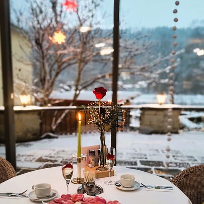 - am 14. Februar: romantisches Abendessen bei Kerzenschein – Genießen Sie unser exklusives Menü, liebevoll angerichtet von unserem Küchenteam.