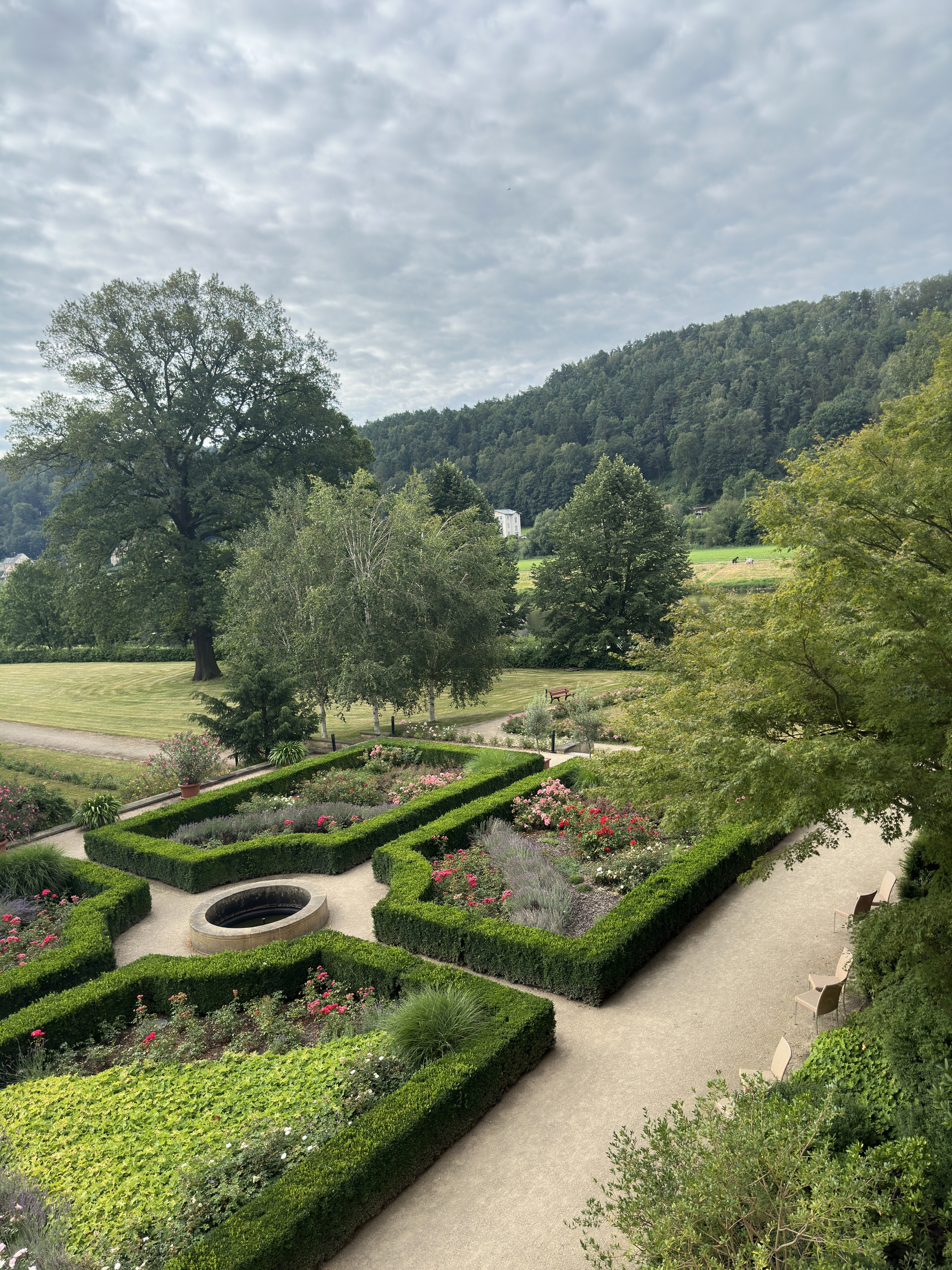 Alle haben einen herrlichen Blick in den Park und teilweise seitlichen Elbblick. Unser Geheimtipp: zwei Zimmer dieser Kategorie haben eine versteckte Dachterrasse weit hoch über der Elbe mit fantastischem Blick ins Elbtal.